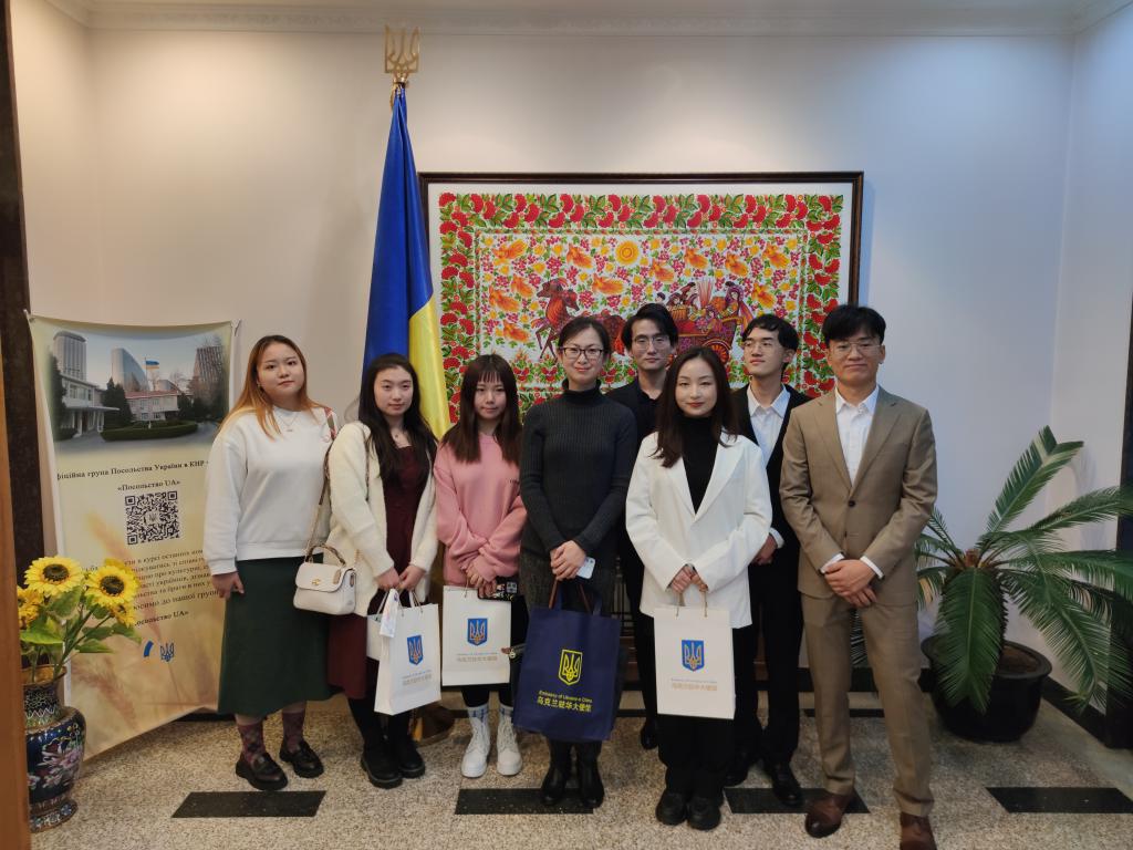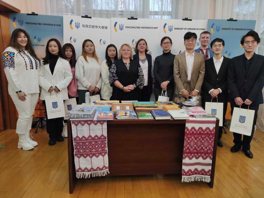12月9日下午,应乌克兰驻华使馆邀请,俄语学院乌克兰语专业师生赴使馆参加了向北京外国语大学乌克兰研究中心赠书仪式。乌克兰驻华使馆临时代办、公使衔参赞张娜·列亲斯卡、一等秘书瓦列里·布隆斯基赫、二等秘书瓦莲京娜·奥利尼克出席活动。