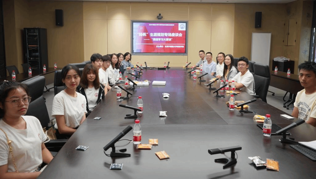 之后,校友与现场同学就学习困惑、生涯规划等问题进行热烈讨论。叮嘱同学们不断探索外语学习的奥秘,培养好奇心,不断尝试,不断突破。