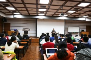 周大使首先对四十年后重返母校与俄院师生交流互动表示了兴奋之情。作为一名经验丰富的优秀外交官,多年来,周大使一直投身于我国的外交事业,自1973年入职外交部后,担任过外交部苏联东欧司苏联处处长、东欧中亚司司长、中国驻俄罗斯使馆公使、驻乌克兰、波兰、哈萨克斯坦特命全权大使等职,时至今日,仍在外交部外交政策咨询委员会的岗位上为外交事业无私奉献。周大使首先以“怎样看待俄罗斯”为主题,以自己1979年第一次外派苏联的所见所闻作引,讲述了自己眼中的旧日苏联图景。随后,周大使从东正教起源深入剖析了俄罗斯的社会思想观念,即“扎根于本国传统价值的务实的保守主义,其实质为民族利益至上”,他指出,虽然近些年来,因为西方制裁、经济不景气等原因俄罗斯国内出现了一些负面情况,但总体上,俄罗斯人民依然保有其“诗与剑”的独特民族气质,俄罗斯也依然保有其世界大国的地位,并且在普京总统的引导下走向重新崛起。在俄罗斯文学部分,周大使与同学们分享了自己在学生时代读书的经历,鼓励同学们多读俄文原著,加深对俄罗斯国情的了解,“一篇陀思妥耶夫斯基的小说给你的震撼远远超过一万个段子给你的快感。”